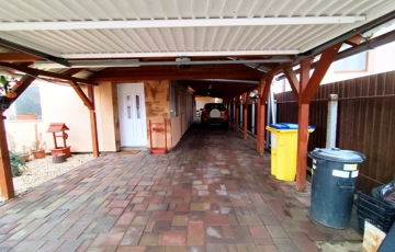 A térkövezett udvaron 4 autó befogadására alkalmas fedett beálló áll rendelkezésre.