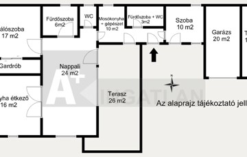- melléképület, mely a főépülethez kapcsolódóan a lakótér részét képezi: mosókonyha + 1 szoba