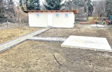 A telken egy különálló 30 nm-es közműves, szigetelt kisház épült,