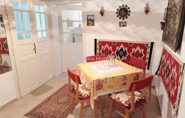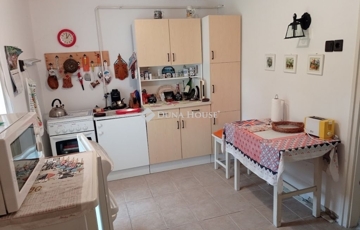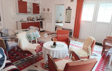 A másik 57 m2-es lakrész a 90-es években készült az akkori modern technológiának megfelelően, műanyag külső belső nyílászárókkal, korszerű gázcirkós fűtéssel ellátva. Ebben az újabb részben találunk egy tágas nappali-konyhát étkezővel, egy szobát, fűrdőt, wc-t, karmrát, ahonnan feljúthatunk a tetőtérbe, ahol akár bővítésre is adott a lehetőség.