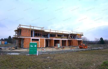 2026 év végi átadással épül 2 db lapostetős sorház, melyekben 4-4 belső kétszintes, 134 nm-es lakás kerül kialakításra.