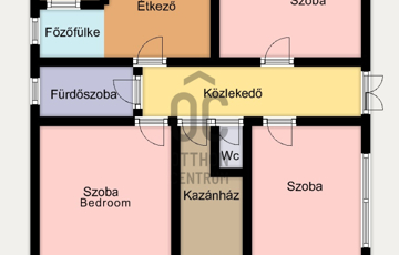 Az ingatlan három tágas, világos szobával, nagy konyhával, főzőfülkével, kamrával, fürdőszobával, külön WC-vel, kazánházzal és közlekedővel rendelkezik.
