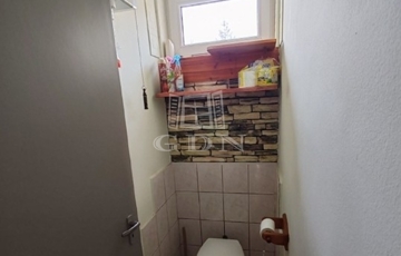 Zuhanyzós fürdőszoba, külön WC, járólap burkolattal