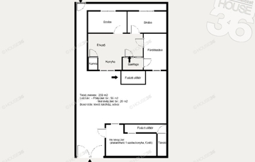 - Lakótér: Főépület: br.: 55 m2 (konyha+ étkező, kamra, 2 szoba, fürdőszoba)
