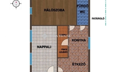 A ház nappali + 1 háló, Konyha-étkező-kamra, és fürdő-wc-vel rendelkezik. Közvetlen mellette fatároló, telken belül egy garázs is elhelyezkedik.