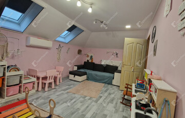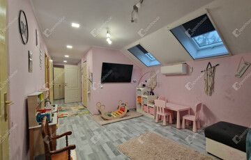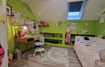 Tetőtéri szintjén - közlekedő, nappali, fürdőszoba külön wc illetve három külön nyíló közel 10 m² méretű vidám gyerekszoba került kialakításra. A nappali részén ha az új tulajdonos igényelne egy konyhai részt, ennek előkészítése megtörtént.
