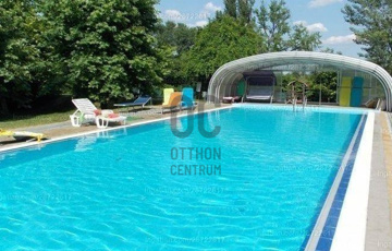 és a csodálatosan gondozott kertben feszített víztükrű medence (8X16m).