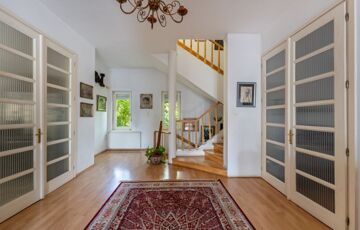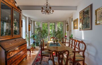 A villa 3 szintes, egy gondozott, intim kertben áll ahol egy hőszivattyúval fűtött kültéri medence is helyet kapott. Tágas terek, napfény, csodálatos miliő jellemzi az ingatlant. Jó beosztású, élhető terek vannak a házban nagyon jól elkülönül a személyes és a közös élettér. A nappaliból nyílik az intim nyáron árnyékos kert. Az emeleti erkélyről csupa zöldre látni.