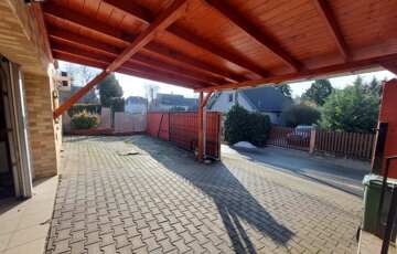 A telek adottságai kiválóak: a garázson túl fedett és térkövezett parkoló áll rendelkezésre további két autó számára.