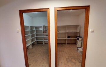 Az alsó szint (nettó 100 m²) elsősorban kiszolgáló és funkcionális tereket kínál.
