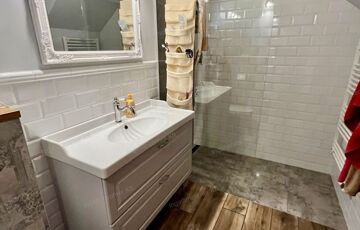 - Hatalmas zuhanyzóval ellátott fürdőszoba