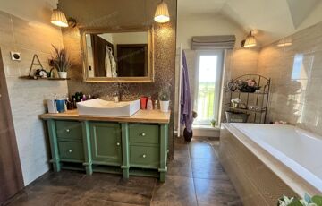 A burkolatok ízlésesek, minőségiek. A ház hangulata magával ragadó.