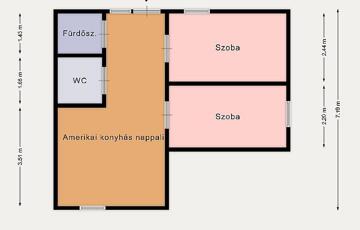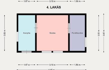 Lakrészenként kb. 60 NM, jelenleg mind ki van adva, a villany és a víz mind külön mérőórán van, a gáz egy óráról működik.
