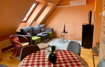 Kiadó tetőtéri lakás, Debrecen belvárosában, az Arany János utcában, a ház belső udvarán saját fedetlen parkolóval.