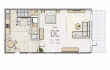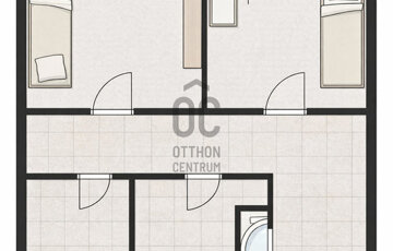 70 m² földszint: nappali + 1 szoba, összkomfort, garázzsal