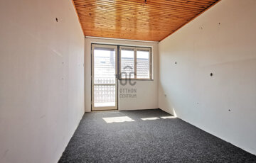 100 m², külön bejáratos emelet + tetőtér: nappali–konyha–étkező + 3 hálószoba, 2 fürdőszoba