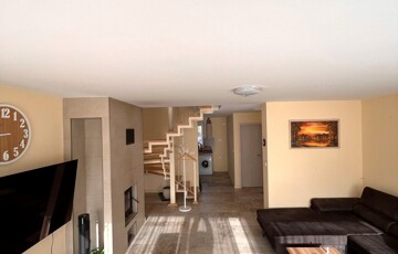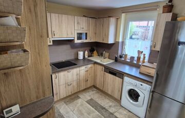 Az ingatlan jellemzői: A nagyobb, 100 m²-es, 2019-ben épült, 15 centiméteres szigeteléssel ellátott tégla szerkezetű épület alsó szintjén egy világos, tágas nappali, egy légtérben lévő gépiesített konyhával, előszoba, fürdőszoba és külön WC kapott helyet. Az emeleten fürdőszoba, WC, gardrób, tároló és jelenleg két hálószoba található, azonban ez bővíthető.