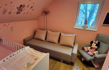 A nagy Schüco nyílászárók hőszigeteltek és redőnnyel felszereltek, így világos, mégis nyugodt életteret teremtenek, közvetlen kilátással a kertre.