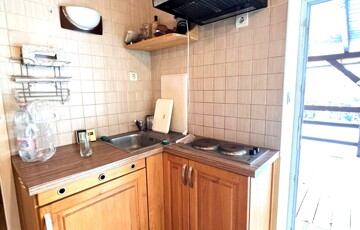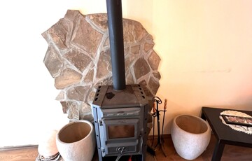A kisebb épület fűtésről egy hangulatos kandalló gondoskodik. A meleg vizet villanybojler biztosítja