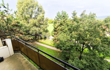 A konyha ablak és a nappali erkélye zöldre, kertes házakra, illetve a Gerecsére néznek.