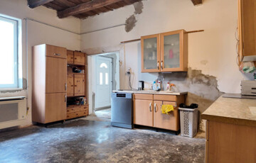 Elosztása: tágas előtér, 2 nagy szoba, nappali kemencével, nagy konyha-étkező, tusolós fürdőszoba, spájz.