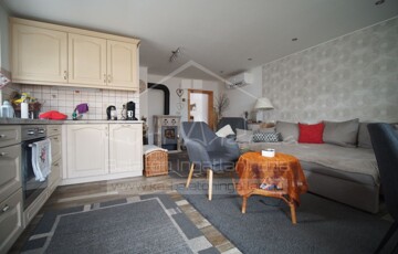 • A nappaliban fatüzelésű kályha biztosítja a meghitt meleget, emellett hűtő-fűtő klíma is rendelkezésre áll.
