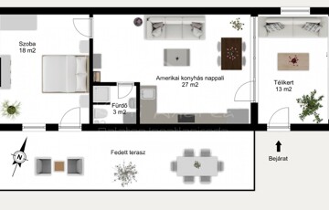 A ház fűtött alapterülete 61 m², amely magában foglal minden belső teret – a télikertet is –, a terasz kivételével. A balkon természetesen további kényelmes kültéri életteret biztosít.