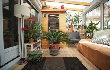 The bright winter garden creates an additional year-round living space, while the balcony provides a pleasant outdoor relaxation area.