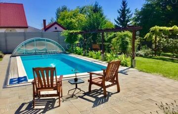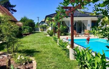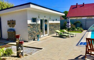 Prémium, modern Balaton-közeli családi ház vendégházzal, fedett medencével – 300 m-re a vízparttól.