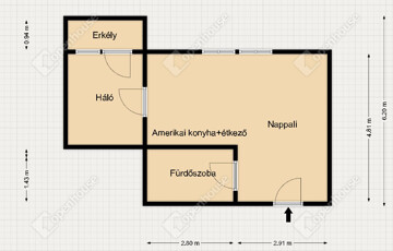 - 38 nm, 1+1 szoba, amerikai konyha nappalival