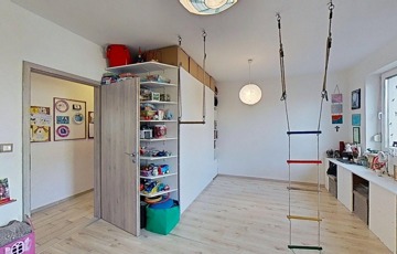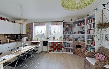 A lakás központi tere vitathatatlanul az amerikai konyhás nappali, beépített konyhabútorral és gépesítéssel (BOSH mosogatógép, Gorenje mikro, Whirlpool sütő, Elektrolux főzőlap, páraelszívó). A nappaliból csatlakozik le a 19 m2-es fedett erkély, mely kellemes helyszíne lehet akár baráti/családi összejöveteleknek. Kialakításra került a kádas fürdőszobán túl egy vendég WC is, mely a nappali és a gyerekszoba között helyezkedik el. A jelenleg 23 m2-es gyerekszoba két különálló szoba egyesítésével alakult ki a gardróbbal egyetemben. Az eredeti állapot némi átalakítással visszaállítható, így a lakás akár 4 szobássá is tehető. A lakás tartozékai a méretre készített bútorok és berendezések, amik színben harmonizálnak egymással, együtt alkotva egy esztétikus egészet. A jelenleg szülői hálószobából további 5 m2-es erkély csatlakozik le, mely szintén a belső kertre néz.