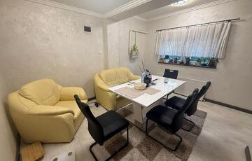 Elrendezés: 3 szoba, konyha + étkező, 2 zuhanyzó, 2 wc, közlekedő, előszoba.