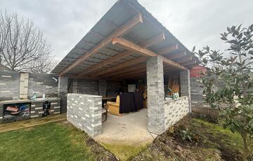 A ház téglából épült, beton alappal és beton födémmel rendelkezik, 10 cm-es dryvit szigetelés van a házon.