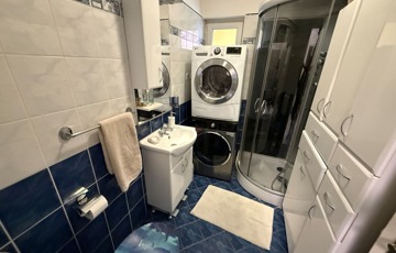 A praktikumról két fürdőszoba gondoskodik: lent fürdő és WC, fent pedig egy sarokkádas fürdőszoba WC-vel, ahol egy hosszú nap után igazán jól esik megpihenni. A tetőtérben található szobákhoz beépített gardróbszekrények tartoznak, így a tárolás is kényelmesen megoldott.