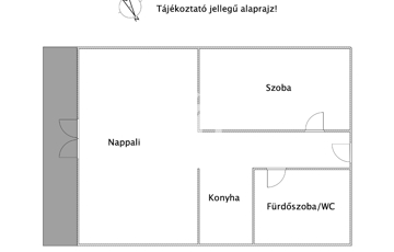 - 1 egész szobából, 1 félszobából, 1 előszobából, 1 konyhából, 1 fürdőszobából/ Wc-ből áll.
