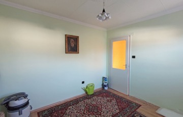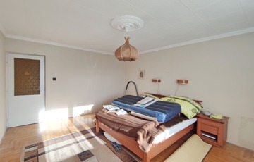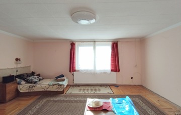 A családi ház az 1950-es évek elején épült betonozott alapzattal, kis pincével, amelyre 1986-ban ráépített a tulajdonosa egy új szintet, cserép héjalással, északnyugati fekvéssel, remek elosztású, szintenként nagyon tágas és világos szobákkal. A ház minden szempontból kellően világos.