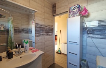 A háznak két teljesen elkülönülő bejárata van a két szinthez, ezáltal kiváló lehetőség akár két lakóingatlanként is megvásárolni, mert a szolgáltatókat is külön le lehet ebben az esetben választani.