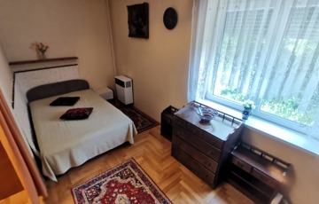 A lakás elhelyezkedése és nagy ablakai által világos, különleges hangulatát növeli a pazar kilátás, az árnyat nyújtó magas fák közelsége.