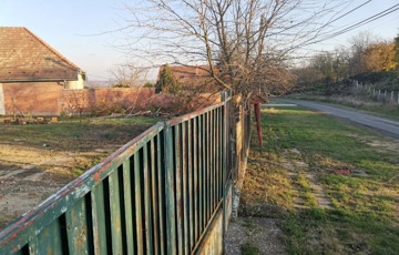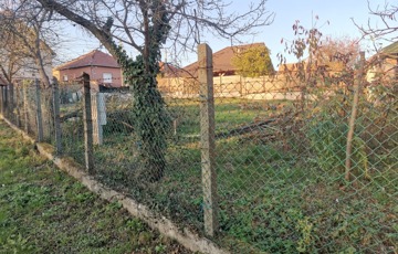 A csendes, aszfaltos utcában elhelyezkedő saroktelek körbekerített, üres, villany, víz, csatorna a telken, a gáz bekötési lehetőség az utcából.