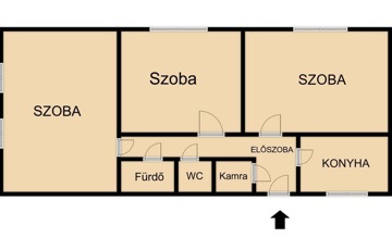 A lakásba lépve hosszúkás előszobába lépünk, melyen keresztülhaladva jutunk el a hangulatos tágas közel 17 m2 nappaliba, és innen nyílik a hálószoba, a közlekedőből balra fordulva közelíthető meg a kényelmes méretű 7,5 m2, étkezésre is alkalmas műanyag nyílászárókkal ellátott konyha. A kádas kialakítású fürdőszoba a hálószobából nyílik és 1 éve lett felújítva. A WC külön helyiségben került elhelyezésre az előszobából lehet megközelíteni, emellett rendelkezésünkre áll egy nagyon hasznos kamra is.