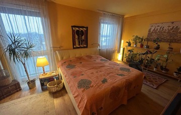 A lakás délkeleti fekvésű, mind a konyha ablakából, mind a szobákból a házat körülölelő, szép kertes környezetben gyönyörködhetünk.