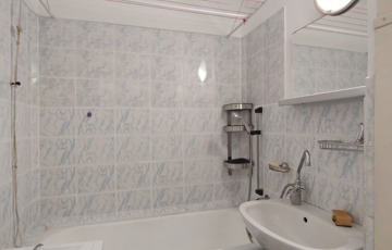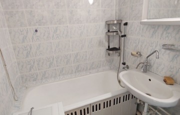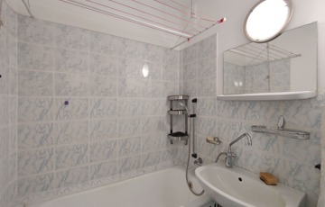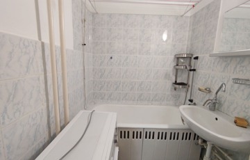 Közvetlenül a konyha mellett találjuk a kádas 3 nm-es fürdőszobát, ami magába foglalja a toalettet is, megkímélt burkolatokkal elátott, de igény esetén felújításra szorul.