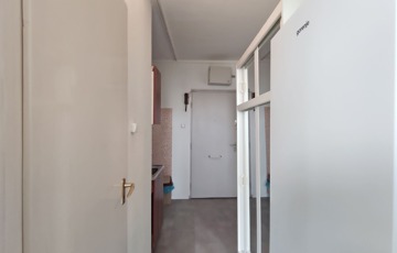 Belépve a közlekedőből balra nyílik a 18,3 mn-es nappali , amit laminált parkettával burkoltak, Dél-Nyugati fekvésének köszönhetően napfényes, nyáron a hűtéséről klíma gondoskodik. Szemben nyílik az ablakos, szintén napfényes laminált parkettás félszoba. Jobbra a közlekedővel egy légtérben található a gépesített 3,85 nm-es konyha, bútorzata újszerű, amely a vételár részét képezi, 6 éve eset át egy tejleskörű felújításon.