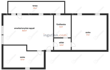 A lakótérben nappali, 2 szoba, egy konyha, egy zuhanyzós fürdőszoba, wc-vel és előszoba található.