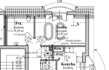 - 27 m2-es központi pozícióban lévő nappali-étkező, erkély kb 3 m2