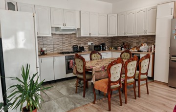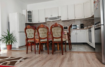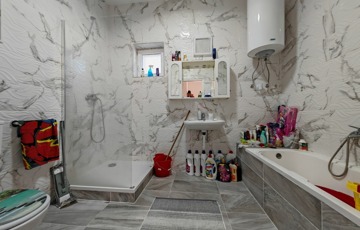 Az ingatlan elosztása átgondolt és praktikus: a tágas, napfényes amerikai konyhás nappaliból csillagszerűen nyílnak a hálószobák és a vizesblokkok, így biztosítva a család minden tagjának a magánszférát. A fürdőszoba igazi komfortzóna, ahol a modern kád mellett egy külön zuhanyzó is helyet kapott. A reggeli készülődés kényelmét a fürdőtől különálló, plusz mellékhelyiség teszi teljessé.