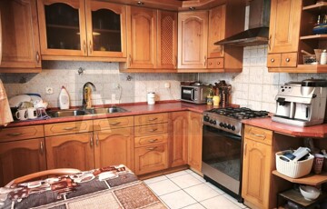 Földszint: konyha, nappali + 1 szoba, kádas fürdőszoba wc-vel, kazánház