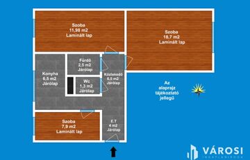 A lakás 1 db nappalival, 2 db hálószobával, 1 db fürdőszobával, külön Wc-vel, közlekedővel, előtéttel rendelkezik. Az ingatlan elhelyezkedésre, kialakítása miatt rendkívül sokrétű a felhasználása - akár lakás, vagy befektetési célra -, amely maximálisan kiemeli ezt az ingatlant az átlagos lakások sorából és egyedülálló választássá teszi azt.