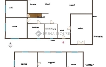 - felső szinten: két hálószoba nappali fürdő wc-vel- gáz-cirkó fűtéssel,
