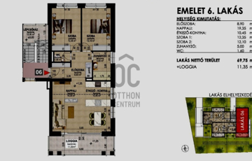 Emelet 6 lakás: 69.75 nm + 11.35 nm loggia